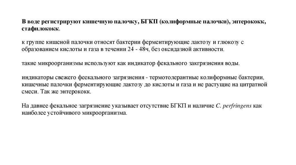 такие микроорганизмы используют как индикатор фекального закгрязнения воды.