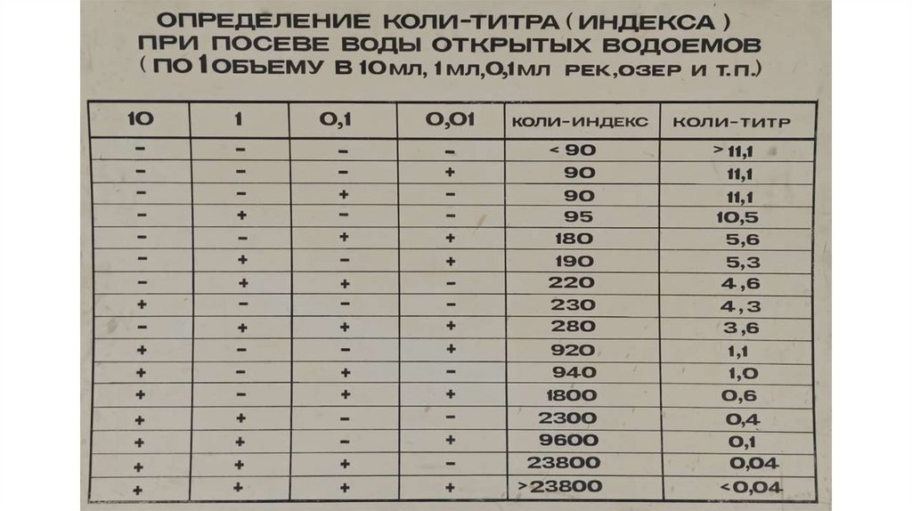 2. Общие колиформные бактерии должны отсутствовать в 100 мл исследуемой воды;
