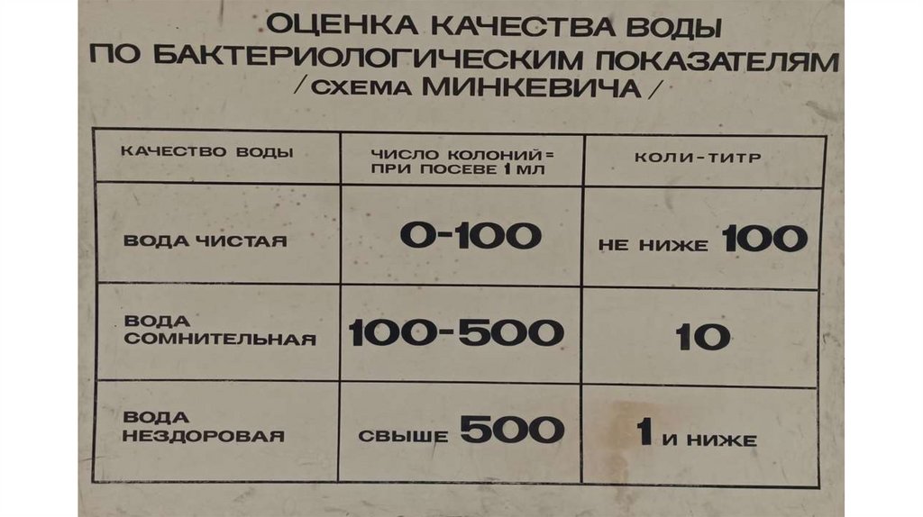 1. Общее микробное число воды не должно превышать 100 микробов в 1 мл исследуемой