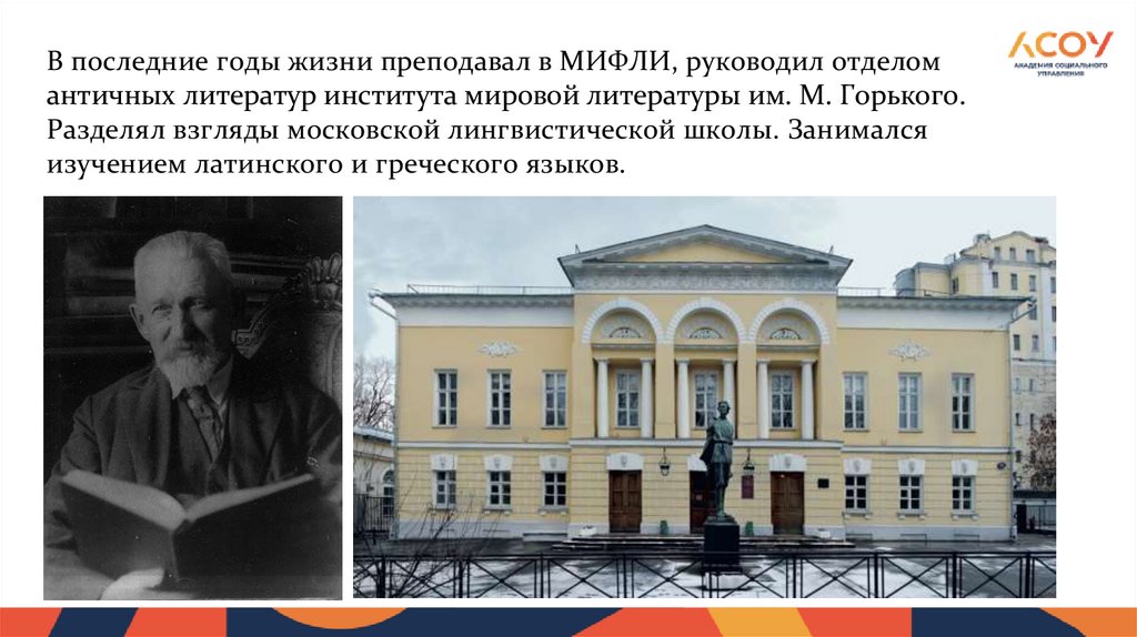 Фортунатова, В. Ф. Миллера и Г. К. Ульянова. Изучал