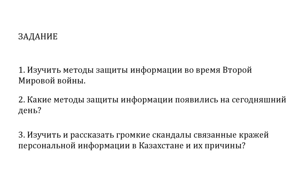 ЗАДАНИЕ1. Изучить методы защиты информации во время Второй