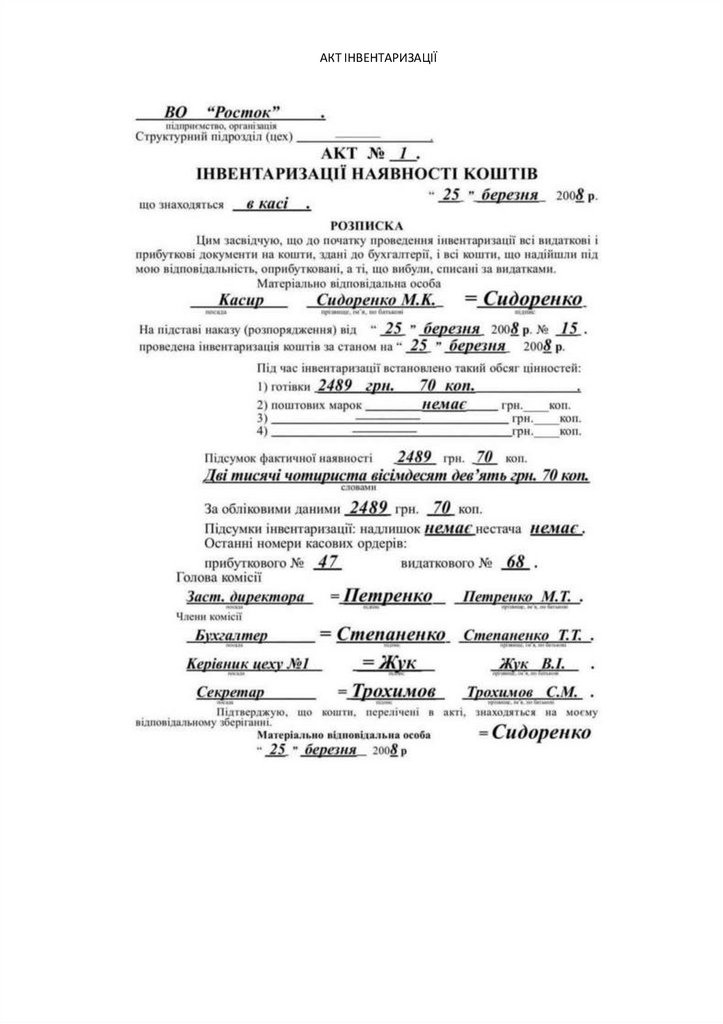 АКТ ІНВЕНТАРИЗАЦІЇ