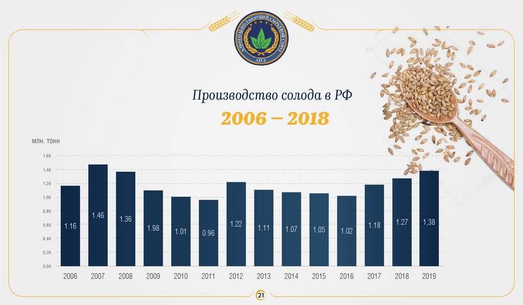 Производство зернового и технического сырья для солодовенной, пивоваренной и спиртовой отрасли РФ