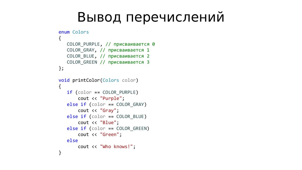 Animals animal = COLOR_BLUE; // приведёт к ошибке компиляции