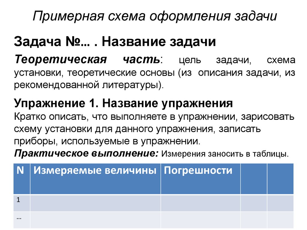 Примерная схема оформления задачиЗадача №… . Название задачи