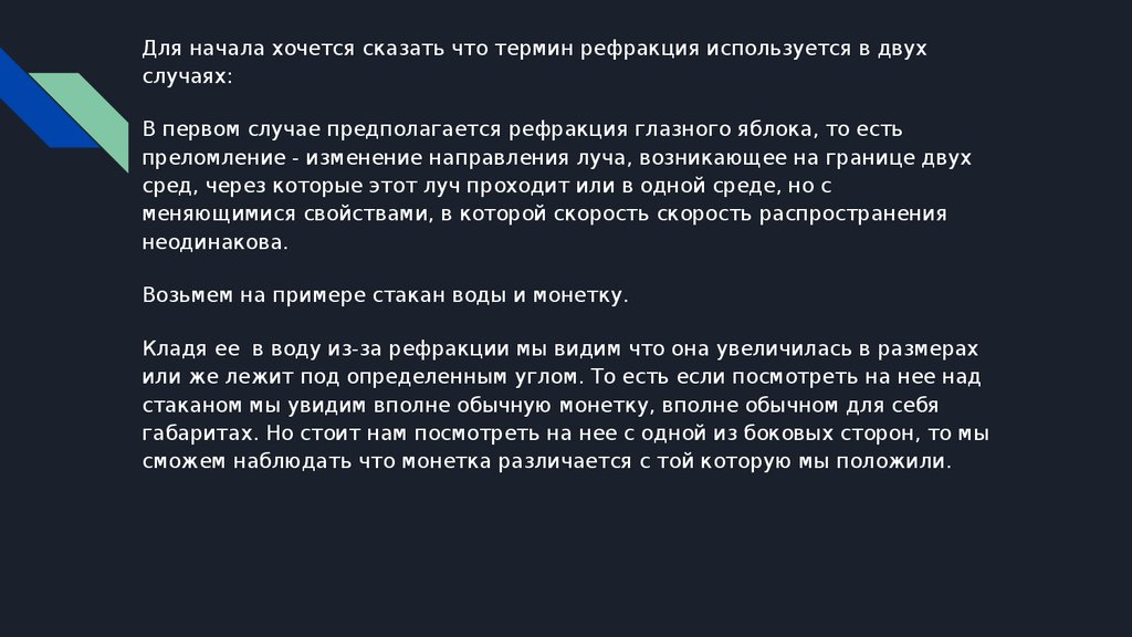 Для начала хочется сказать что термин рефракция используется в двухслучаях: