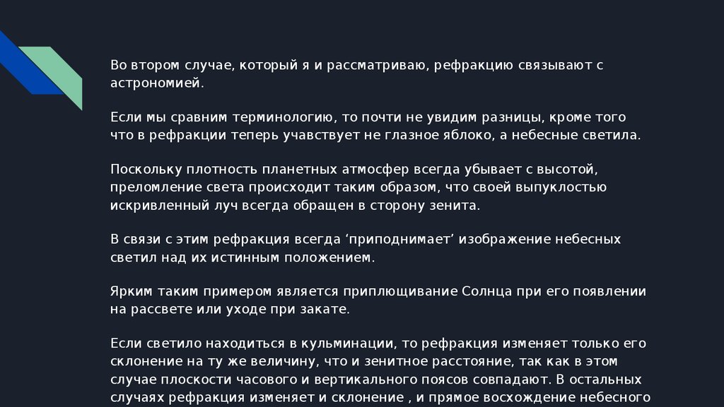Во втором случае, который я и рассматриваю, рефракцию связывают састрономией.