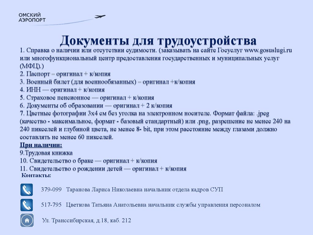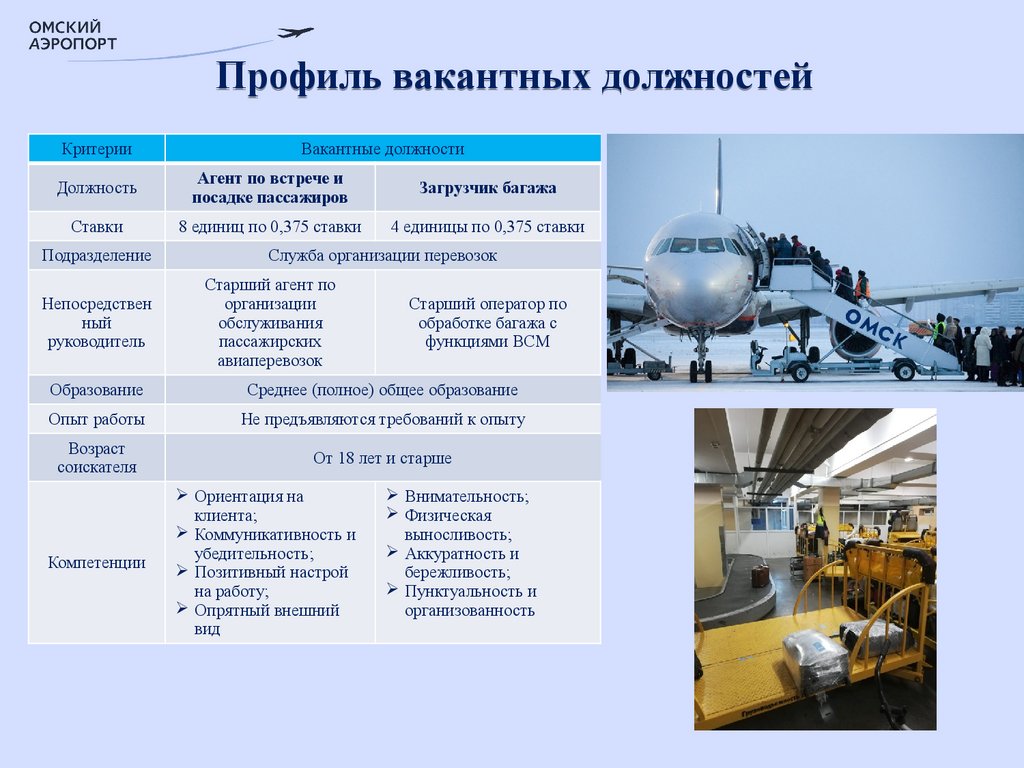 Аэропорт Омск (Центральный) имени Д.М. Карбышева. Профиль вакантных должностей