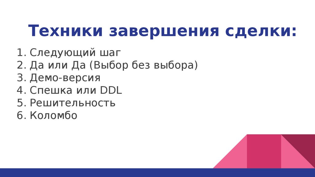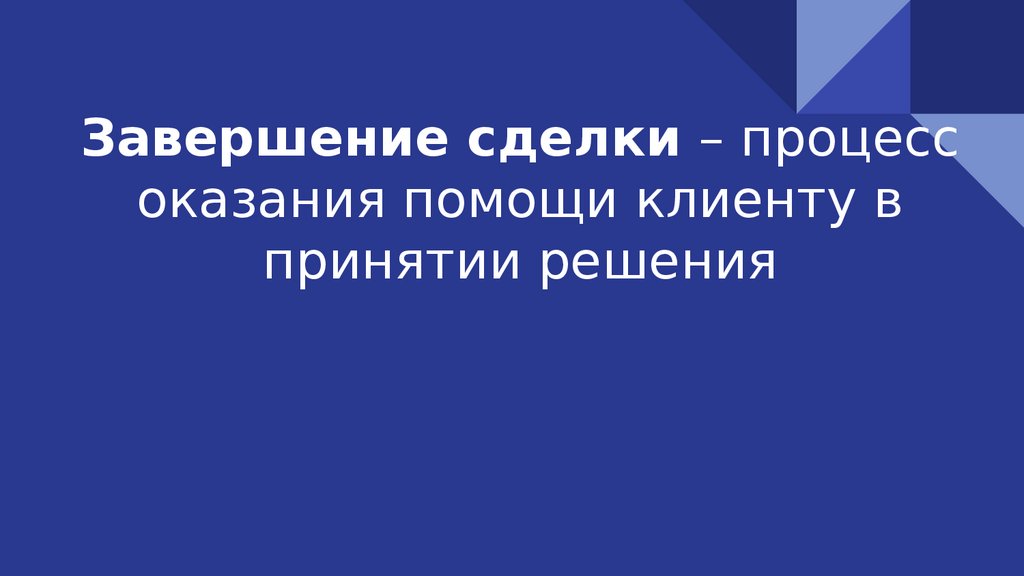 Завершение сделки. Процесс оказания помощи клиенту в принятии решения