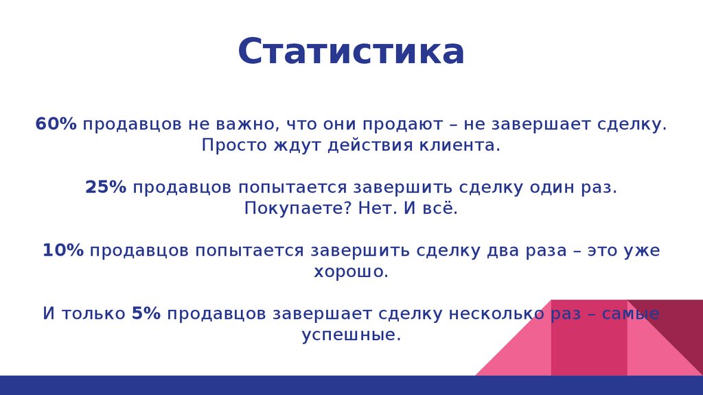 Статистика60% продавцов не важно, что они продают – не завершает сделку.