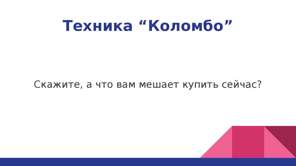 Техника “Коломбо”Скажите, а что вам мешает купить сейчас?