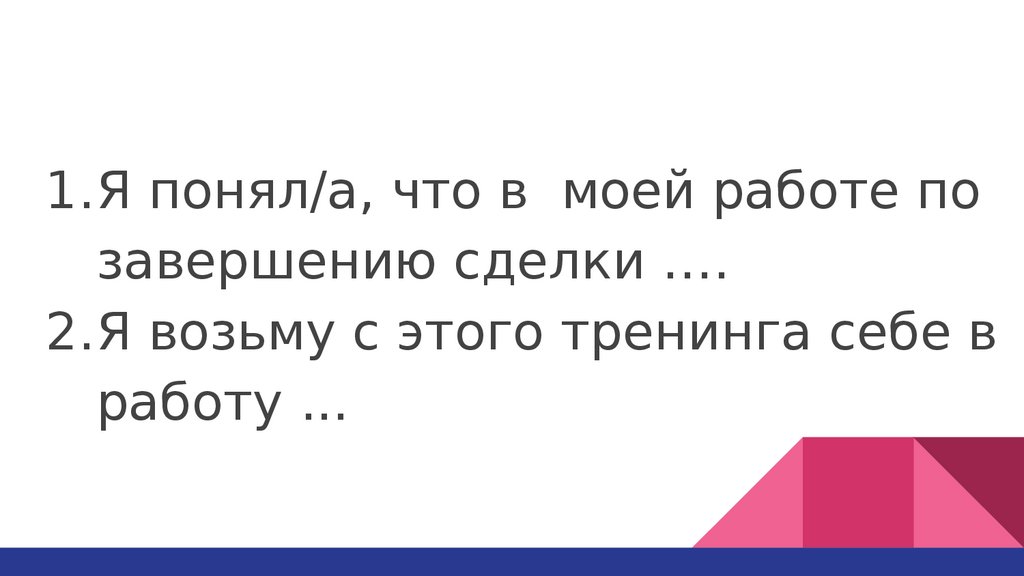 1.Я понял/а, что в моей работе позавершению сделки ….