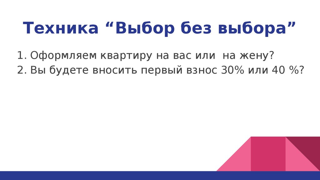 Техника “Выбор без выбора”1. Оформляем квартиру на вас или на жену?