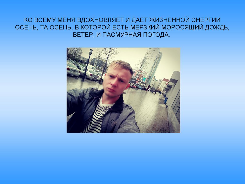 КО ВСЕМУ МЕНЯ ВДОХНОВЛЯЕТ И ДАЕТ ЖИЗНЕННОЙ ЭНЕРГИИОСЕНЬ, ТА ОСЕНЬ, В КОТОРОЙ ЕСТЬ МЕРЗКИЙ МОРОСЯЩИЙ ДОЖДЬ,
