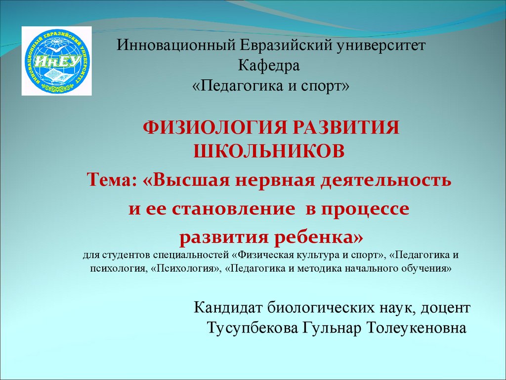 Высшая нервная деятельность и ее становление в процессе развития ребенка