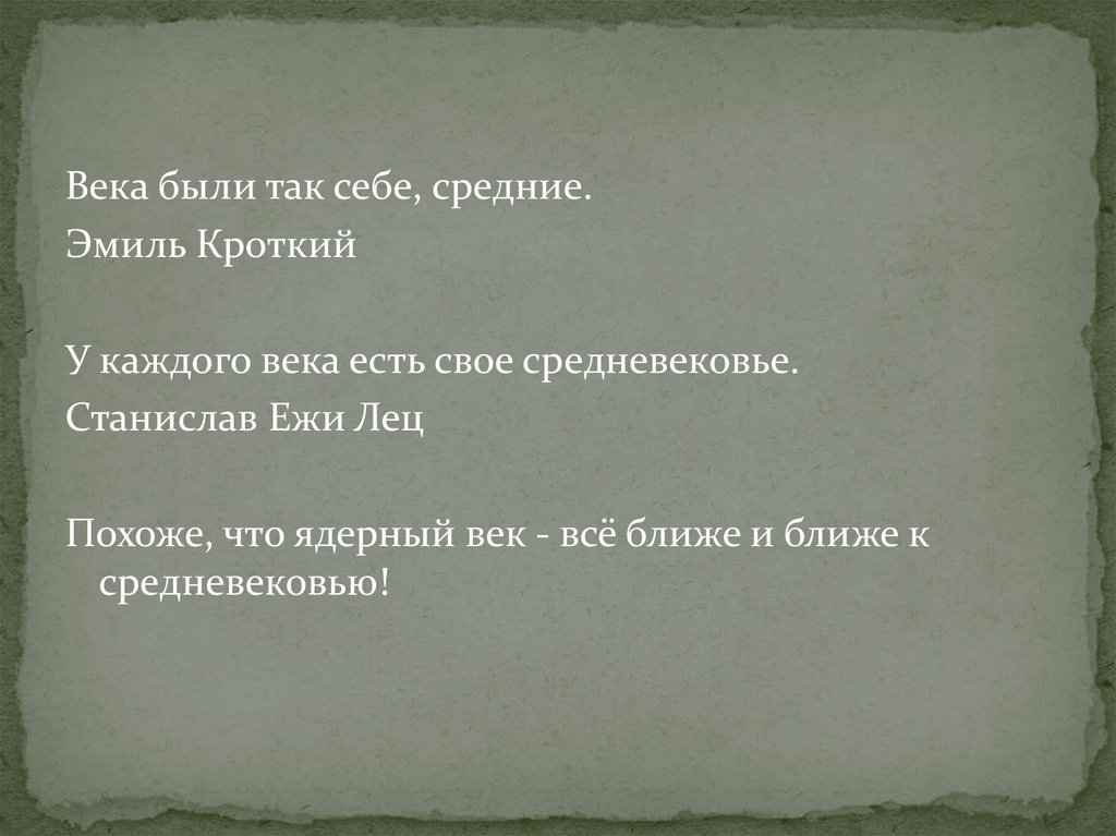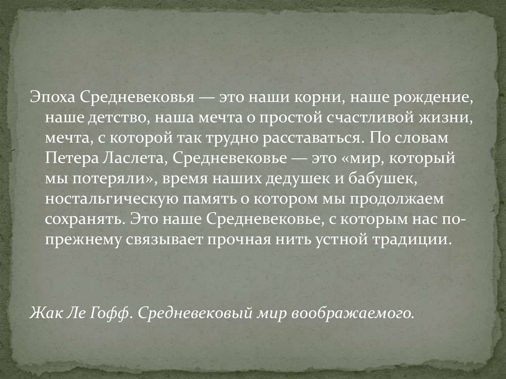 Эпоха Средневековья — это наши корни, наше рождение,наше детство, наша мечта о простой счастливой жизни,