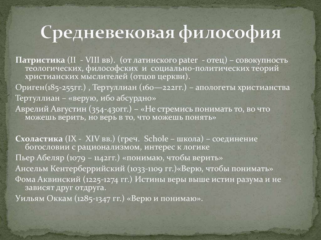 Патристика (II - VIII вв). (от латинского pater - отец) – совокупностьтеологических, философских и социально-политических теорий