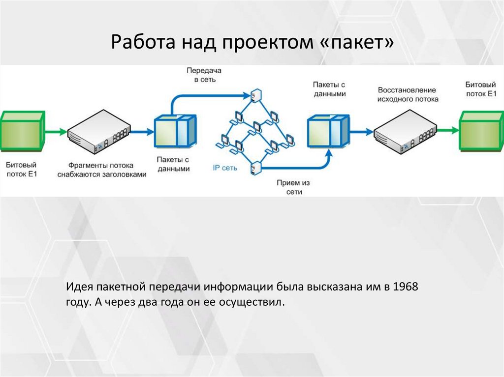 Работа над проектом «пакет»Идея пакетной передачи информации была высказана им в 1968