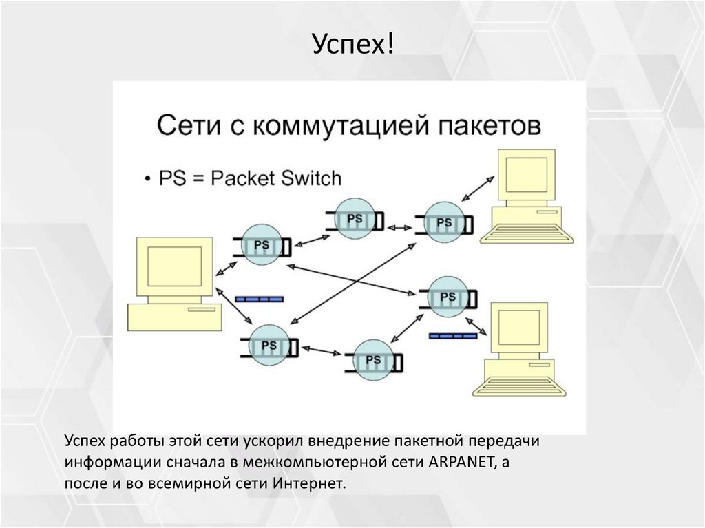 Успех!Успех работы этой сети ускорил внедрение пакетной передачи