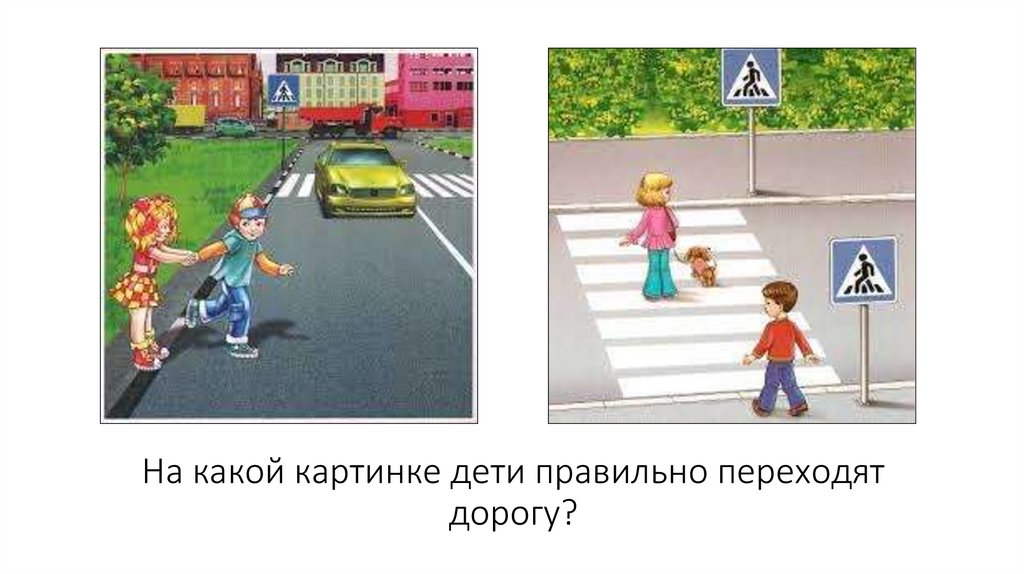 На какой картинке дети правильно переходятдорогу?