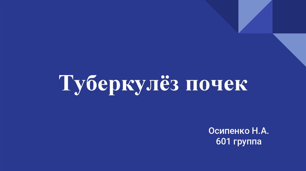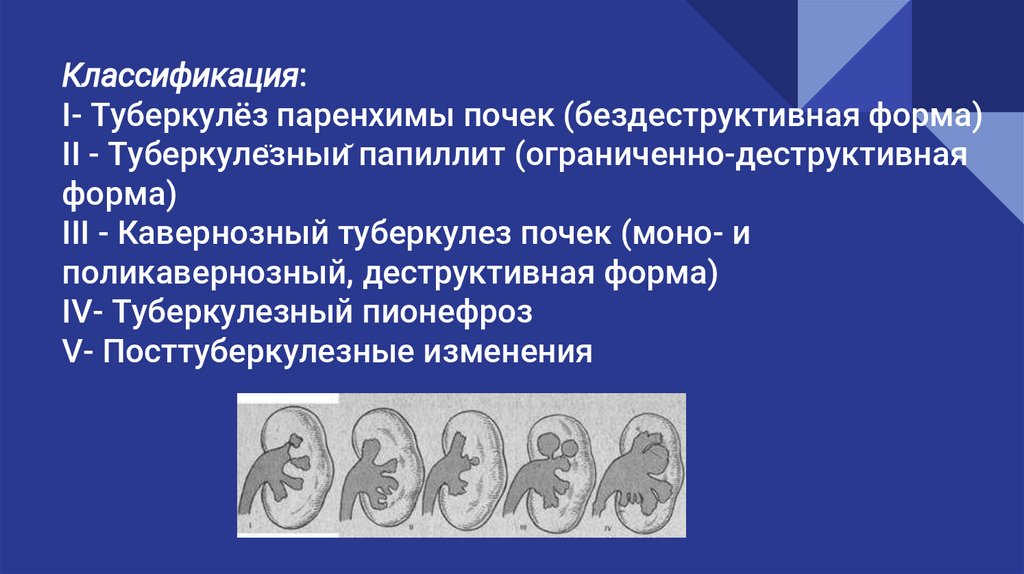 Классификация:I- Туберкулёз паренхимы почек (бездеструктивная форма)
