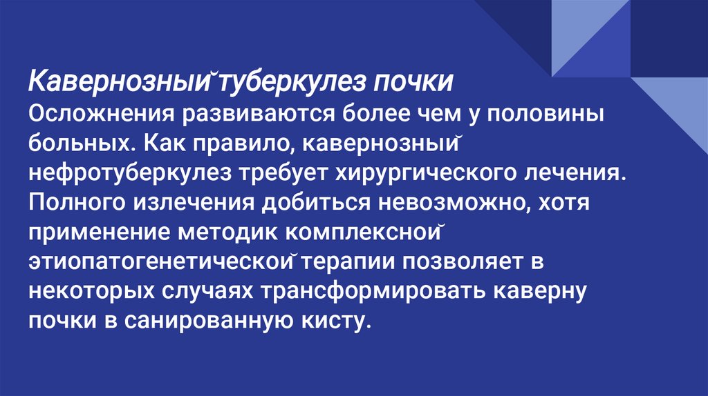 Кавернозный туберкулез почкиОсложнения развиваются более чем у половины