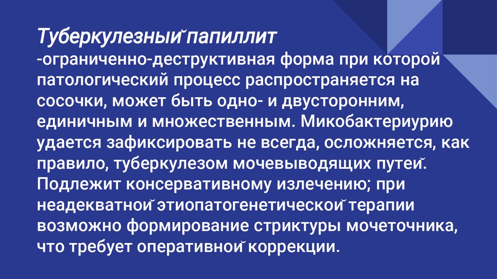 Туберкулезный папиллит-ограниченно-деструктивная форма при которой