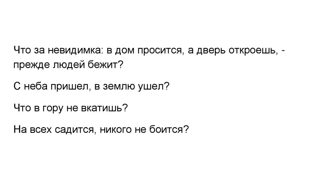 Что за невидимка: в дом просится, а дверь откроешь, прежде людей бежит?С неба пришел, в землю ушел?