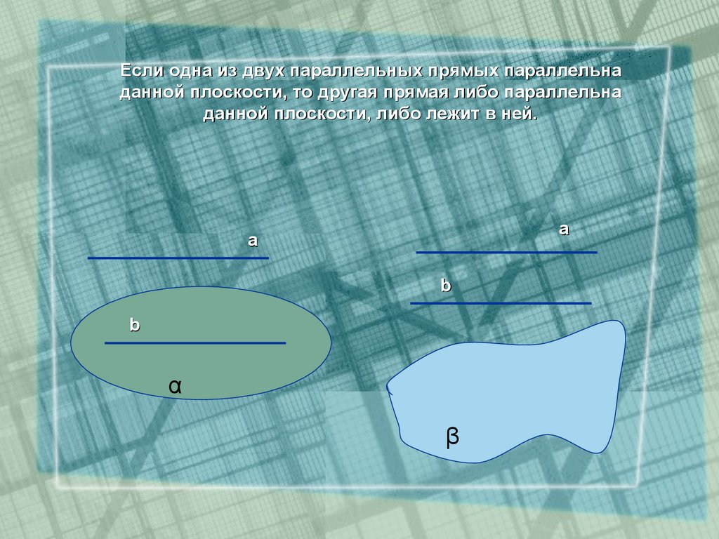 Если одна из двух параллельных прямых параллельнаданной плоскости, то другая прямая либо параллельна