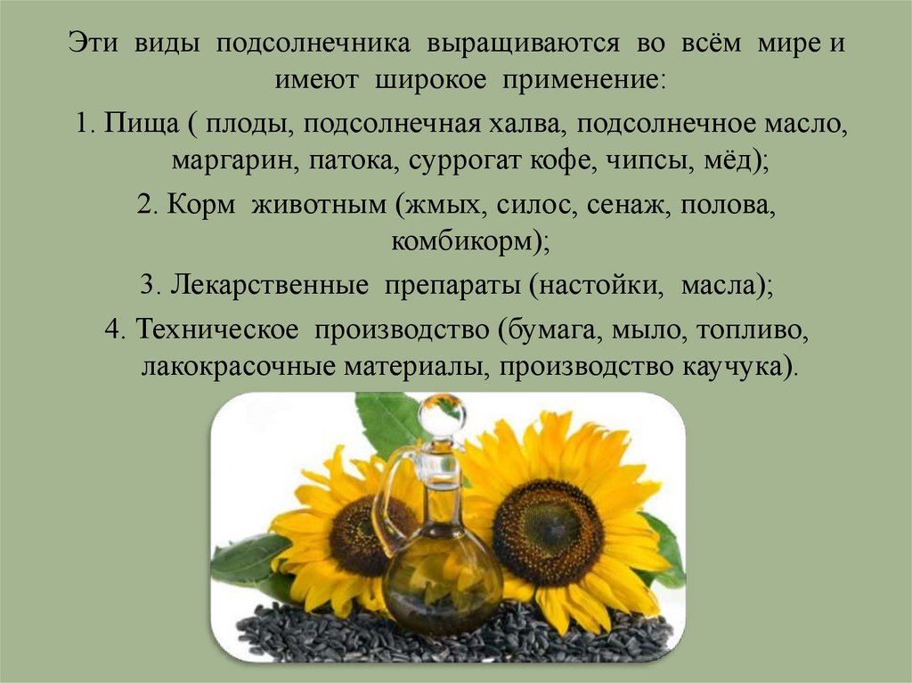 Эти виды подсолнечника выращиваются во всём мире иимеют широкое применение: