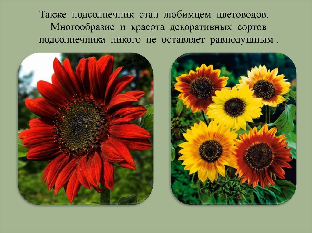 Также подсолнечник стал любимцем цветоводов.Многообразие и красота декоративных сортов