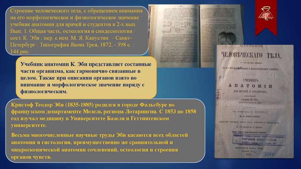 АНАТОМИЯ: СТРАНИЦЫ ИСТОРИИКНИГИ ИЗ ФОНДА БИБЛИОТЕКИ КИРОВСКОГО ГМУ