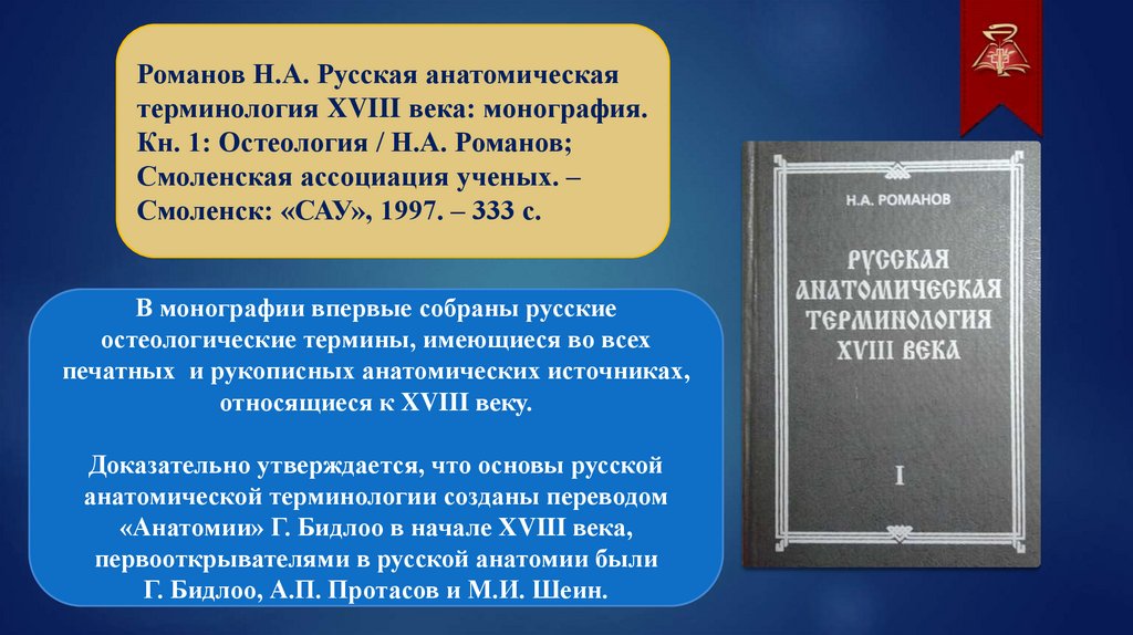 Романов Н.А. Русская анатомическаятерминология XVIII века: монография.