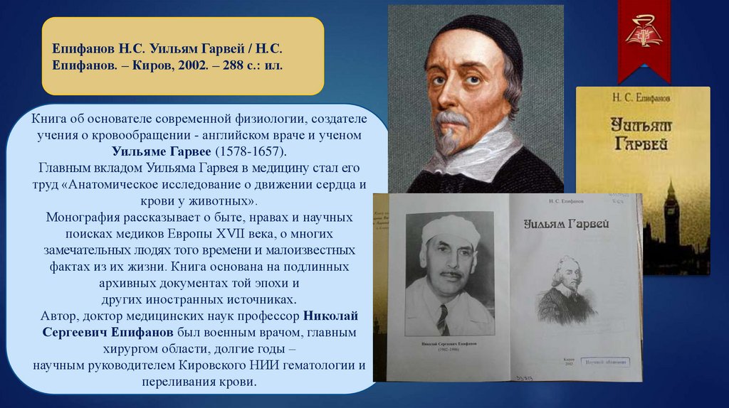 Епифанов Н.С. Уильям Гарвей / Н.С.Епифанов. – Киров, 2002. – 288 с.: ил.