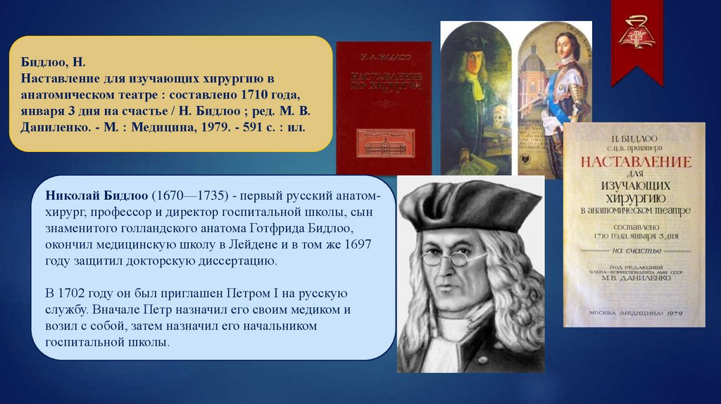 Николай Бидлоо (1670—1735) - первый русский анатомхирург, профессор и директор госпитальной школы, сын