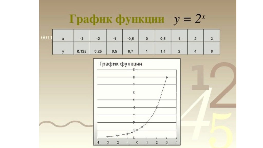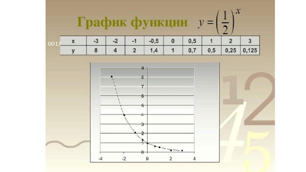 Построить график функции используя таблицу значений