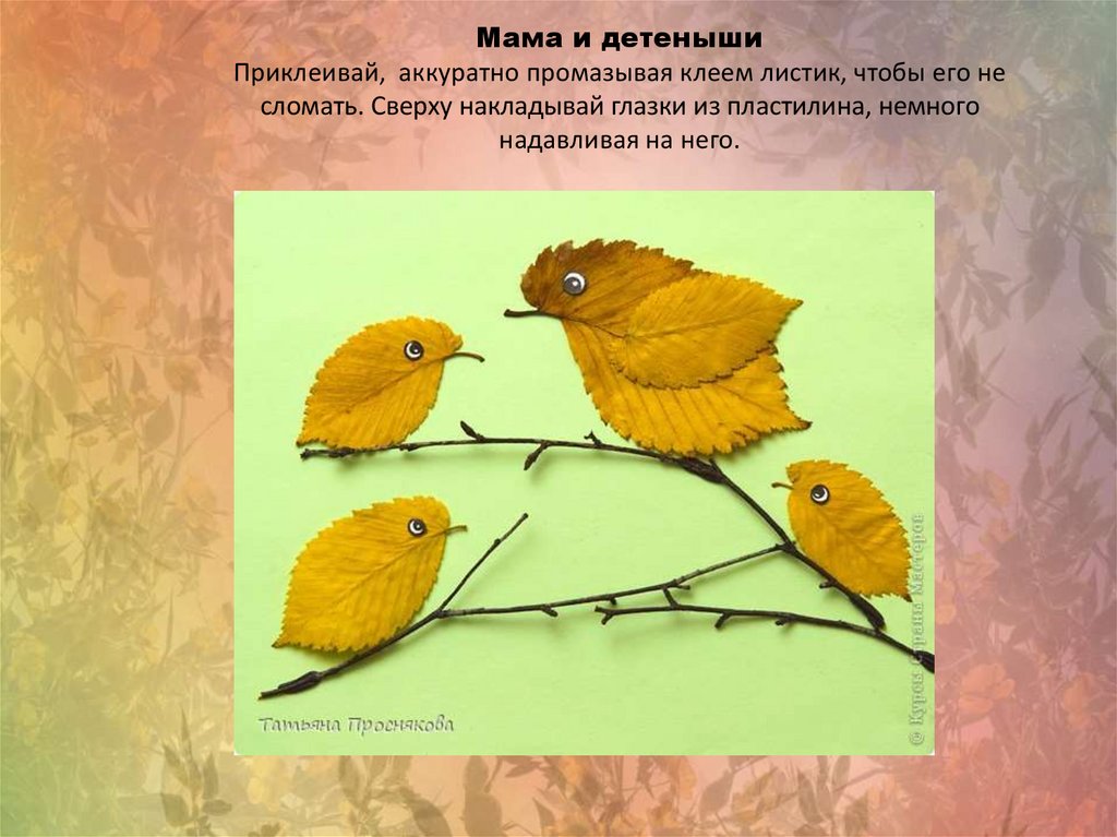 Мама и детенышиПриклеивай, аккуратно промазывая клеем листик, чтобы его не