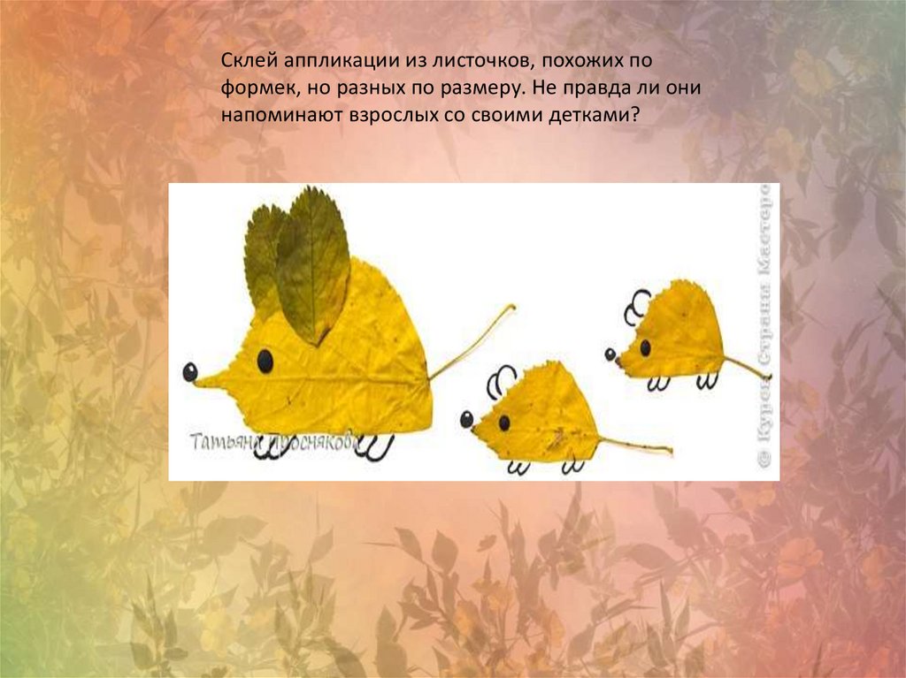 Склей аппликации из листочков, похожих поформек, но разных по размеру. Не правда ли они