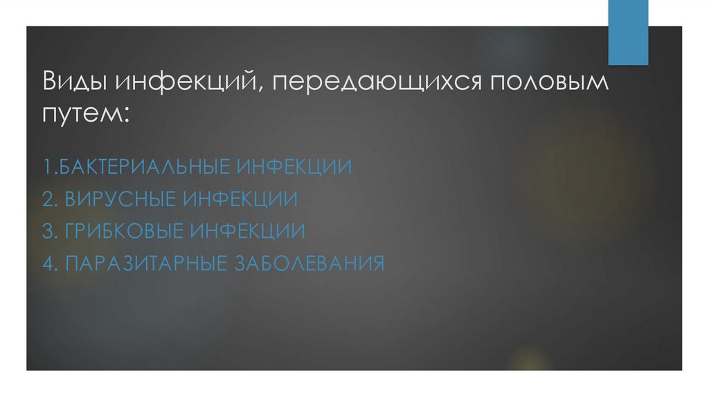 Виды инфекций, передающихся половымпутем: