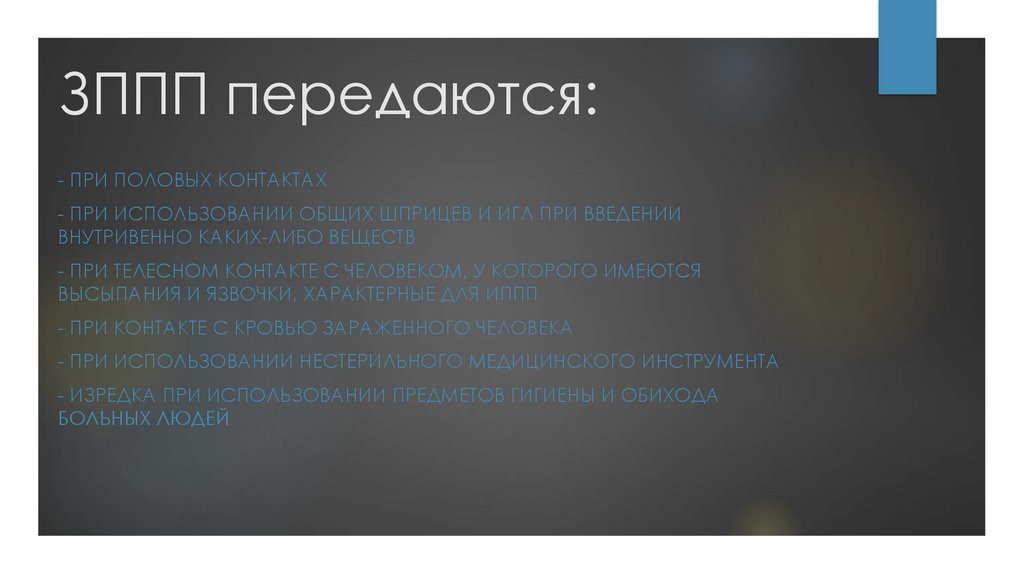 ЗППП передаются:- ПРИ ПОЛОВЫХ КОНТАКТАХ