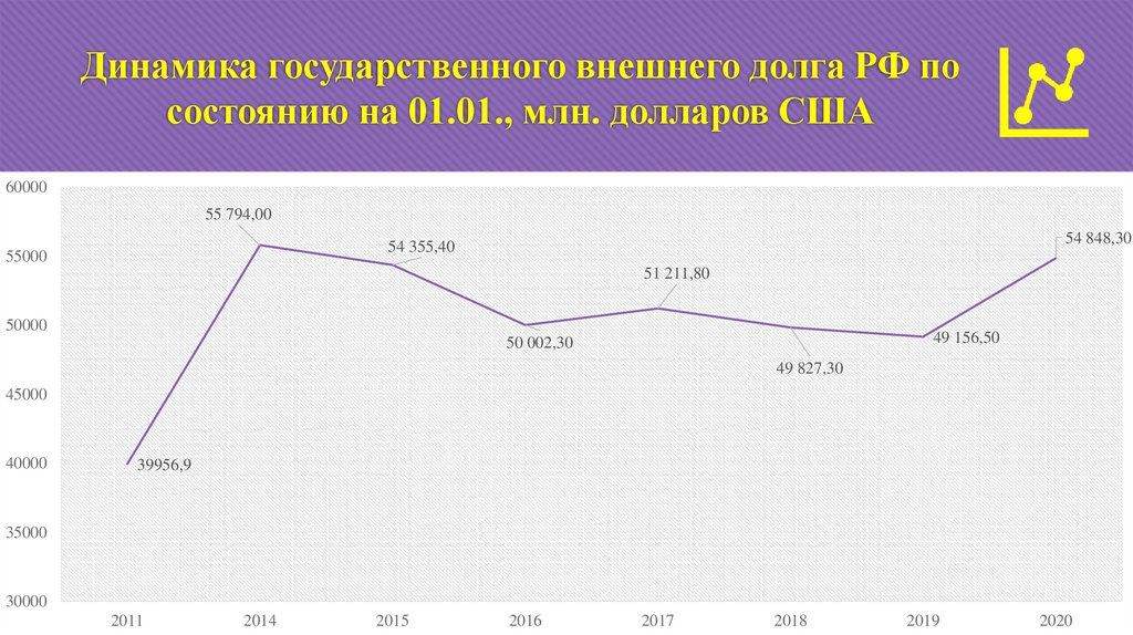 Динамика государственного внешнего долга РФ посостоянию на 01.01., млн. долларов США