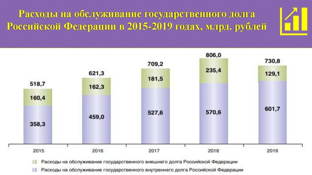 Расходы на обслуживание государственного долгаРоссийской Федерации в 2015-2019 годах, млрд. рублей
