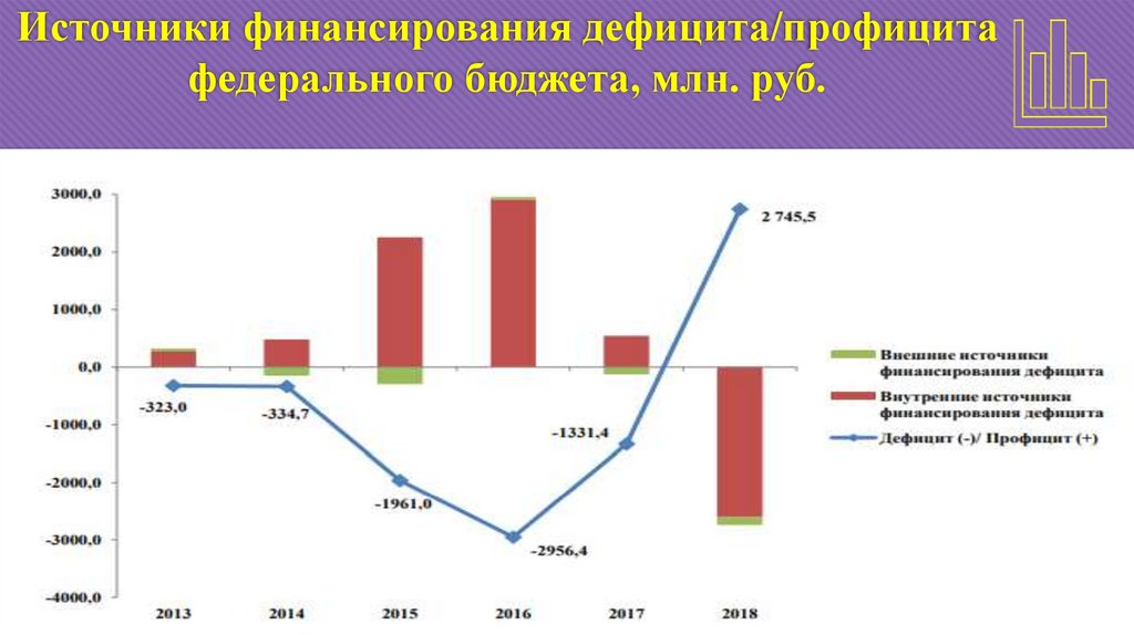 Источники финансирования дефицита/профицитафедерального бюджета, млн. руб.