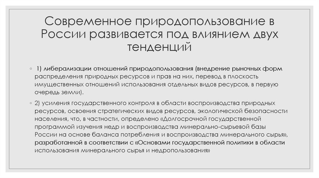 ◦ 2) усиления государственного контроля в области воспроизводства природных