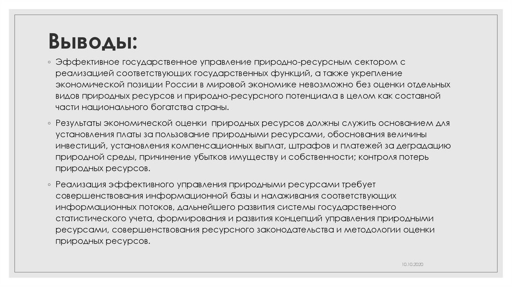 Выводы:◦ Эффективное государственное управление природно-ресурсным сектором с