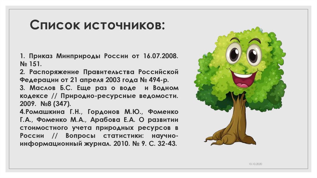 Список источников:1. Приказ Минприроды России от 16.07.2008.