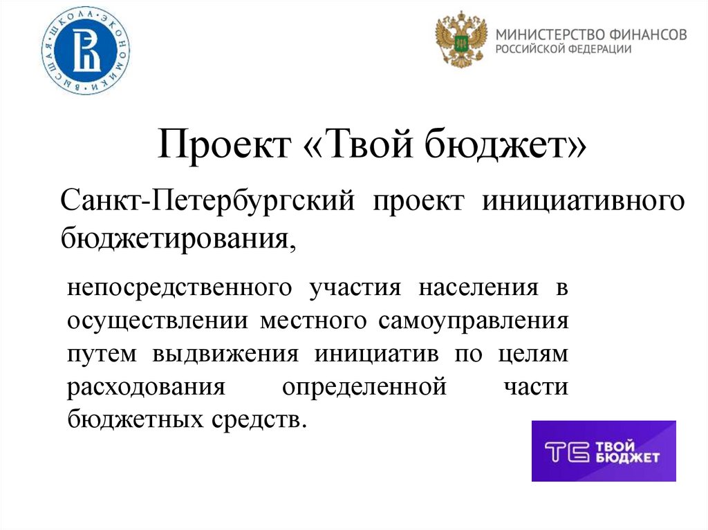 Проект «Твой бюджет»Санкт-Петербургский проект инициативного