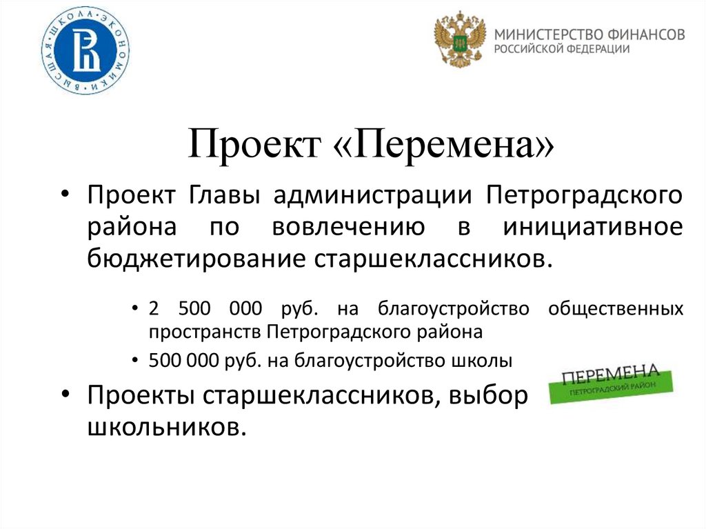 Проект «Перемена»• Проект Главы администрации Петроградского