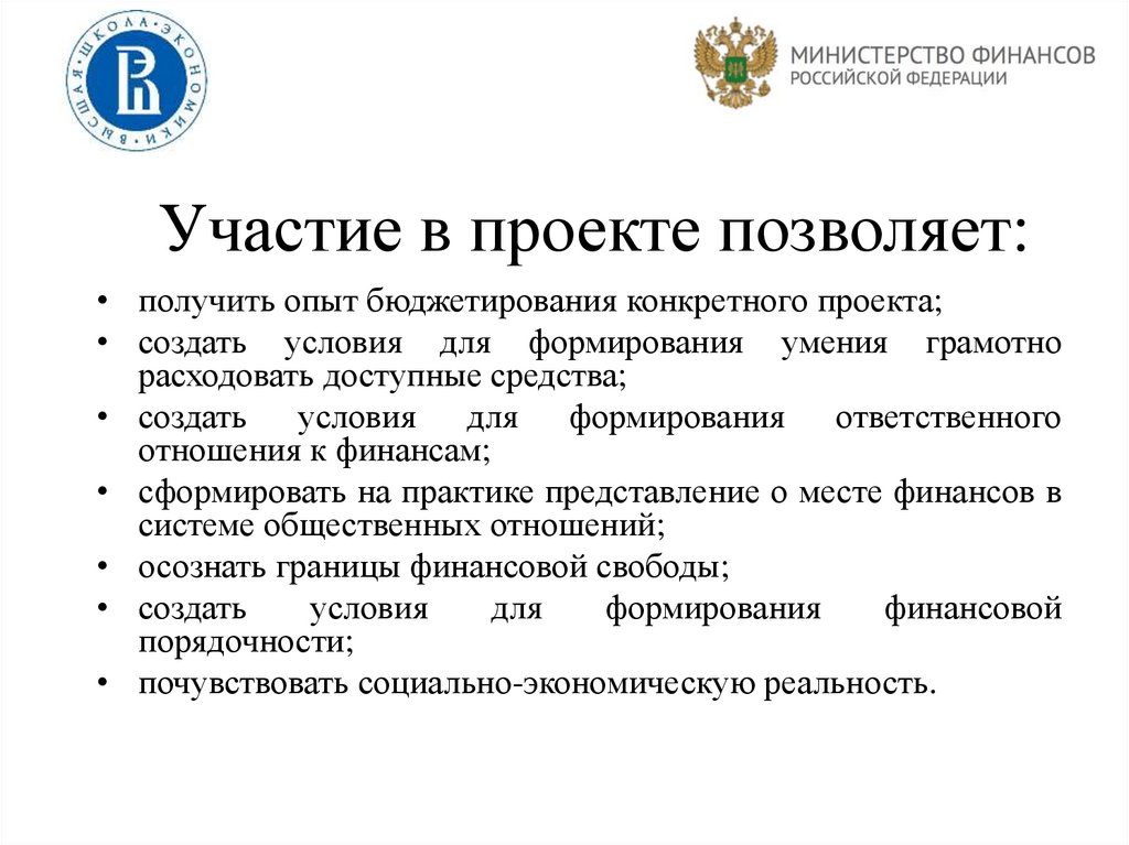 Участие в проекте позволяет:• получить опыт бюджетирования конкретного проекта;