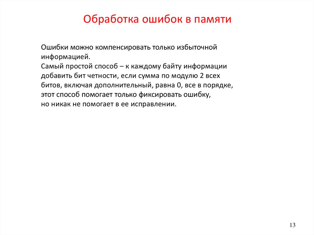Обработка ошибок в памятиОшибки можно компенсировать только избыточной